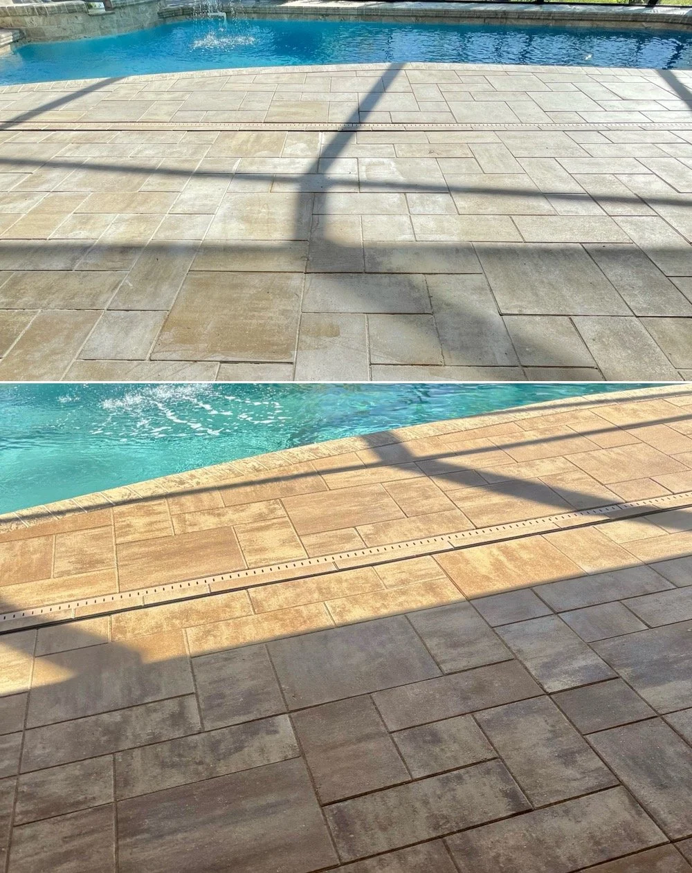Our professional paver sealing services in Punta Gorda protect and enhance driveways, patios, walkways, and pool decks against fading, staining, and weathering. We use a thorough three-step process — deep cleaning, re-sanding with ASTM-C144 joint sand, and sealing with premium Trident sealers — to ensure long-lasting protection and color enhancement. Choose from natural, satin, or wet-look finishes to match your desired aesthetic.
